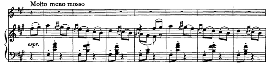 | Episode B | 145-163 | Meno mosso | A Major | 〃 |
