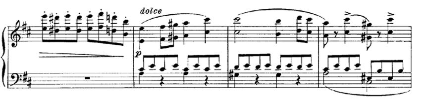 | Second Theme | B | 43-58 | 〃 | D Major | 〃 | ||