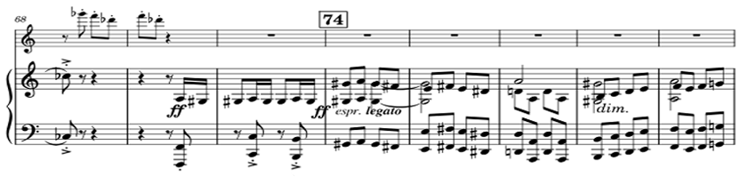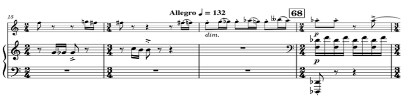 | Theme A | 16-70 | Allegro ♩=132 | C♯ minor (tonal center: C♯) | 〃 |